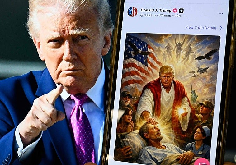 Con Jesucristo se ha topado Donald Trump. Es un presidente poco dado a recular, desdecirse o corregirse en público. Ha hecho de la provocación una … forma de poder y del desafío una disciplina diaria. Por eso sorprendió tanto que acabara borrando una imagen en la que aparecía vestido como el redentor, inclinado sobre un hombre enfermo, en una escena que evocaba una América doliente antes de su regreso como salvador. No fue un detalle menor. En este segundo mandato apenas ha retirado publicaciones. Y, sin embargo, esta vez lo hizo. No por un error técnico, ni por una rectificación política, sino por algo más delicado: una indignación incipiente pero firme entre creyentes, y muy especialmente entre católicos, que vieron en aquella imagen una banalización de la figura central del cristianismo.