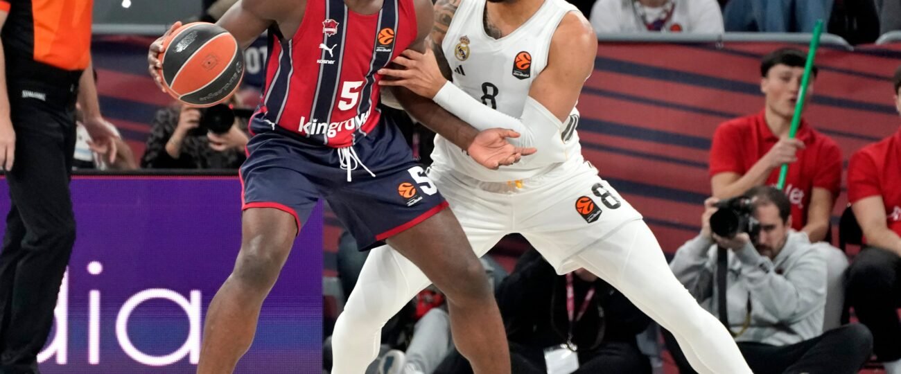 El Real Madrid se ha convertido en la especialidad del Baskonia esta temporada. El equipo de Vitoria le arrebató la Copa del Rey en la final, en el Roig Arena, hace unas semanas y este viernes impidió que el cuadro de Sergio Scariolo alcanzara a los dos primeros clasificados de la Euroliga, el Olympiacos y el Fenerbahce. Esta derrota en el Buesa Arena (98-96) permitió al Valencia Basket igualarle a 22 victorias después de lograr un triunfo en Bolonia (81-94) con un festival de Nate Reuvers, que completó uno de los mejores partidos de su carrera con 33 puntos, 10 rebotes y 44 de valoración. Los dos clubes mantienen sus opciones, a falta de tres jornadas, de acabar la liga regular en puestos de playoffs.