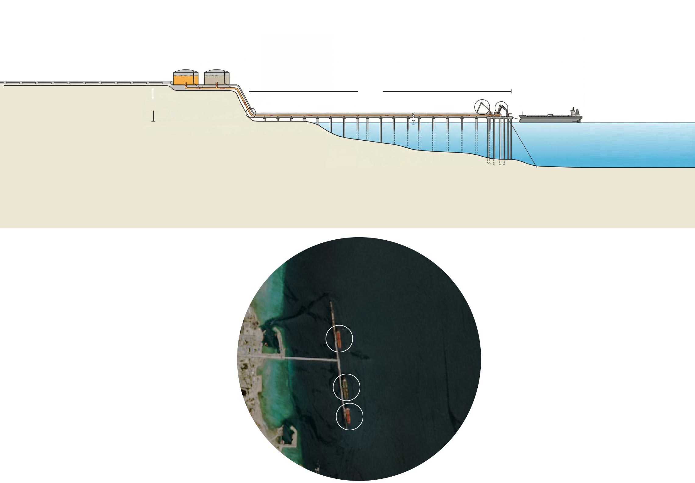 Brazos ‘chiksan’ para verter el crudo en los buques.