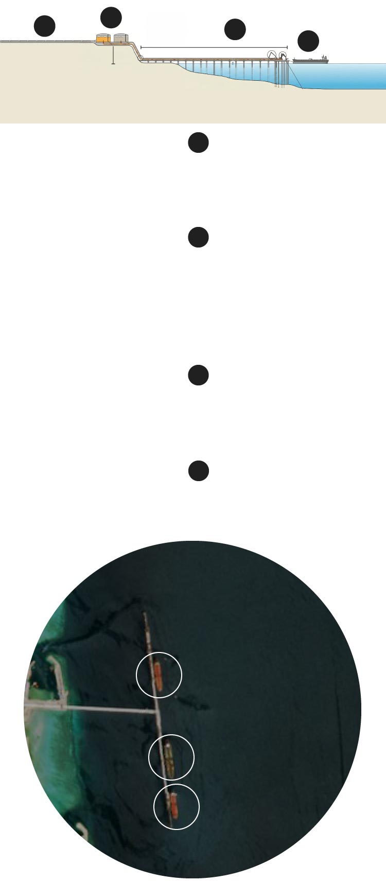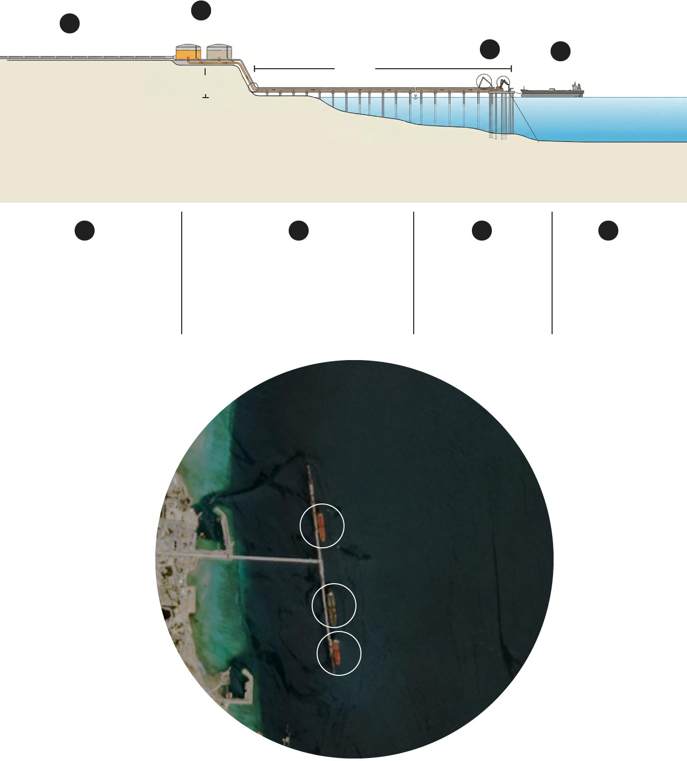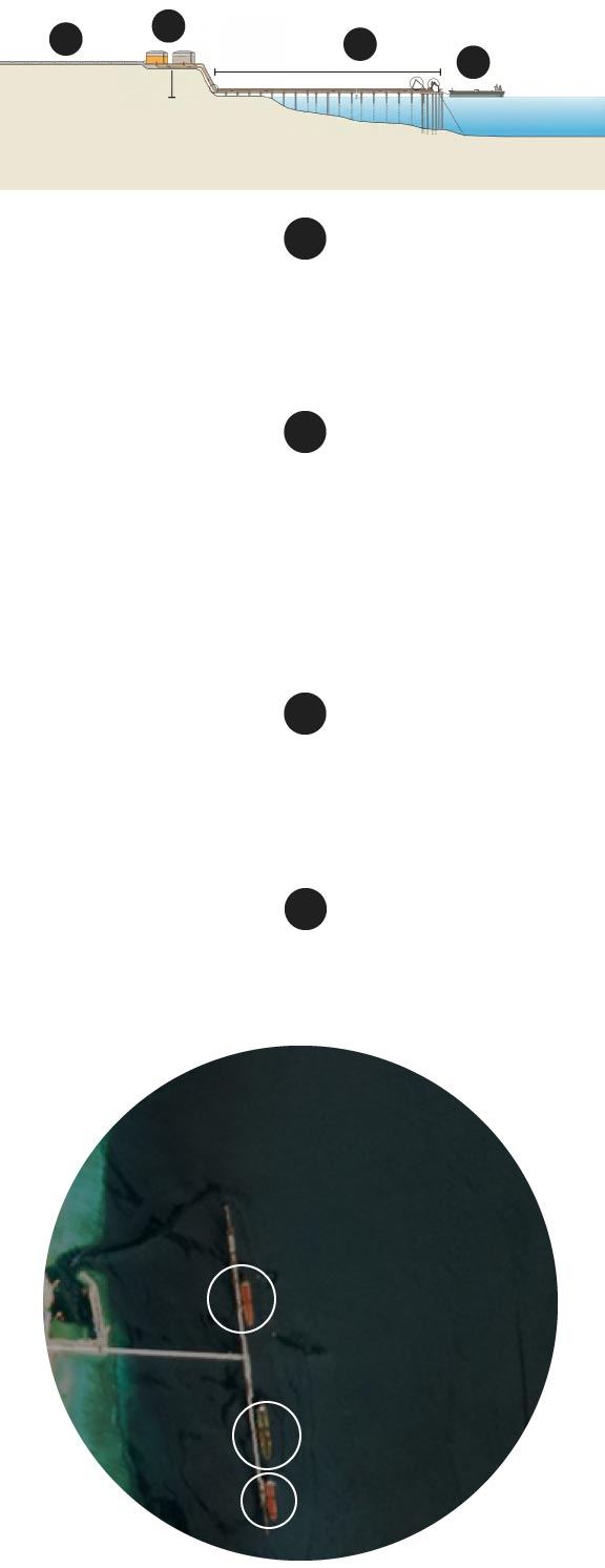 El crudo se almacena en la parte alta de la isla y se deja caer por gravedad. No hacen falta equipos de bombeo.